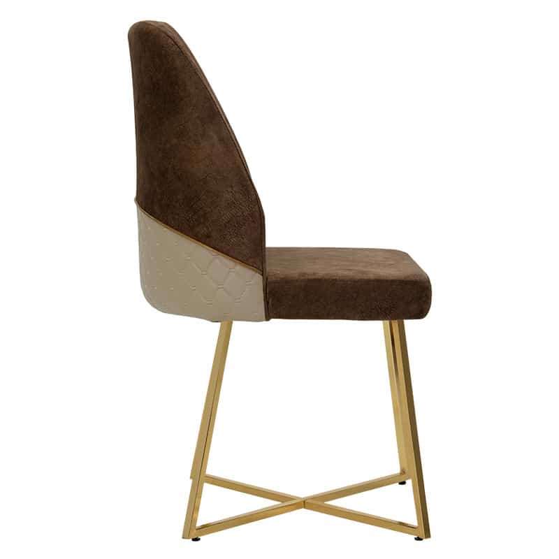 Karrige Elsie kafe-bezhë kadife këmbë e artë me shkëlqim antik