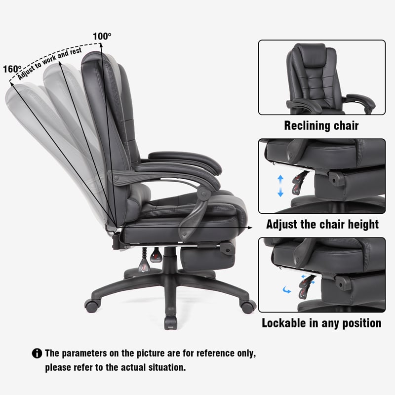 Bëhu i pari që shkruani një vlerësim për 'Karrige për zyre Acel, me mbështetëse këmbësh, PU e zezë 158x63x117.5cm'