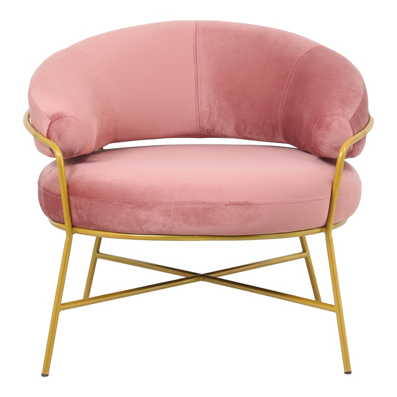 Fotele Malu, stof kadife ngjyrë rozë-kembe metalike ngjyrë ari, 84x79x76cm