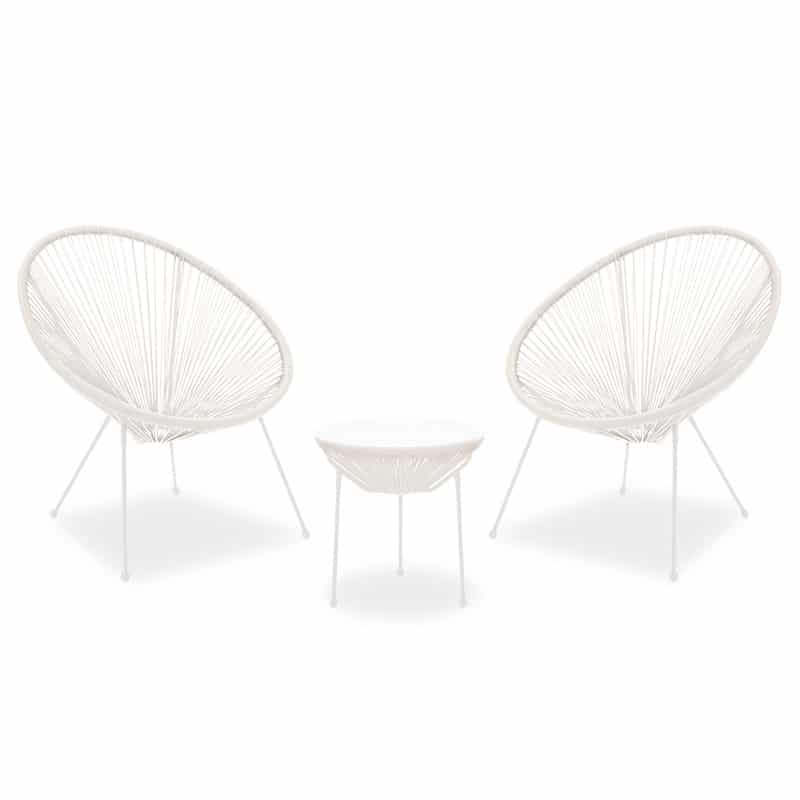 Komplet sallone kopshti 3 copë Acapulco metal-pe e bardhë