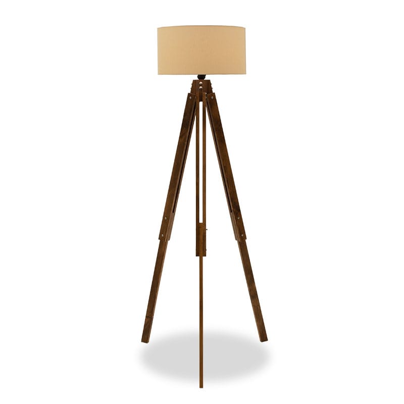 Llambë dyshemeje PWL-0112, E27 prej druri arre – dhe mbulesë ngjyrë ecru, D40x62x155,5εcm.