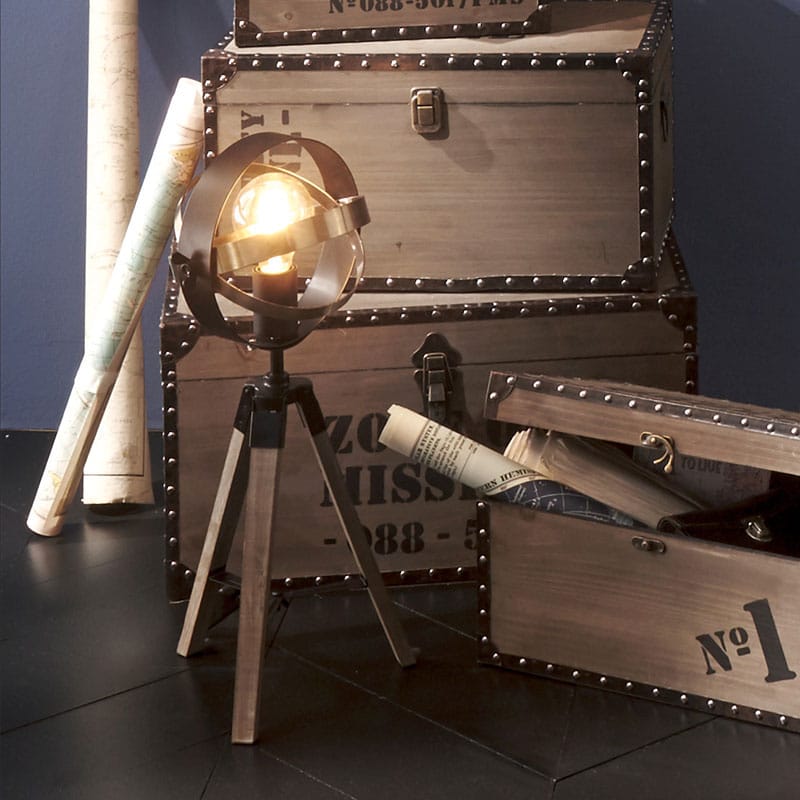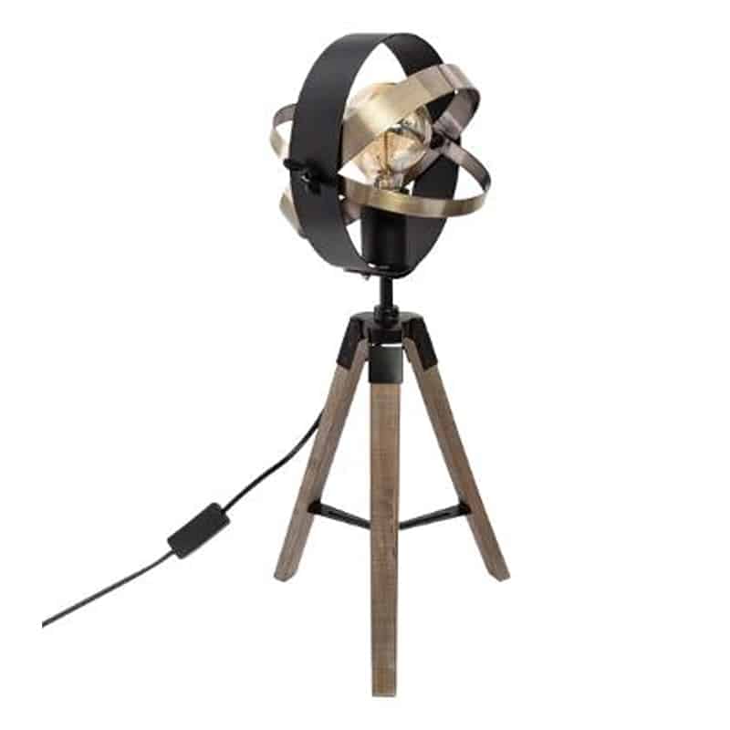 Llambë tavoline Fibi Ε27, ngjyrë natyrale-e zezë-ari 21x21x54cm