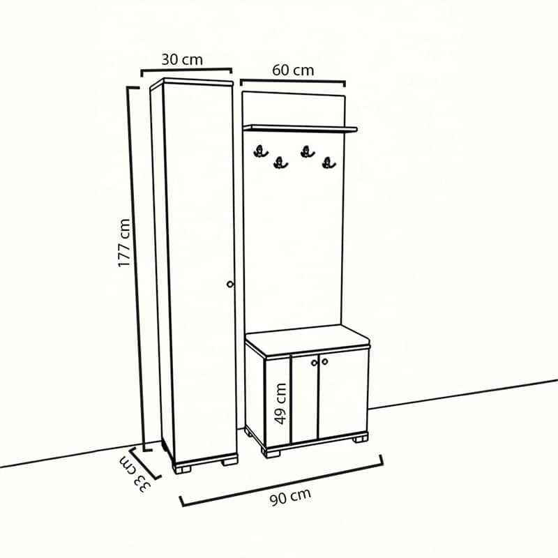 Mobilje hyrje-hanger Wardo melamine bardhë 90x33x177
