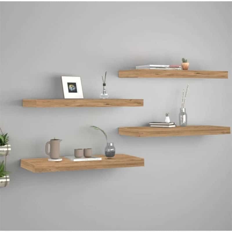 Katër rafte të montuara në mur në një dizajn modern për të nxjerrë në pah sendet tuaja të vogla të preferuara, të përshtatshme për çdo hapësirë.