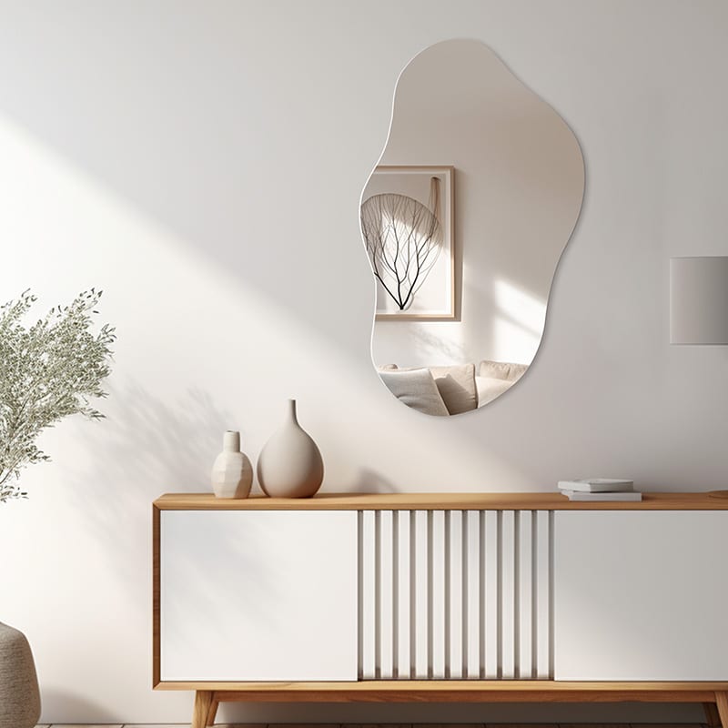 Pasqyra Irregular 2 është një pasqyrë unike dhe origjinale që shquhet për dizajnin e saj të pazakontë dhe të papërsëritshëm. Siç sugjeron emri i saj, kjo pasqyrë ka një formë të keqe dhe të pabarabartë, duke i dhënë asaj një pamje të shtrembëruar por interesante. Këndet e tij të pazakonta dhe kthesat unike krijojnë një ndjenjë bukurie të papritur dhe zgjojnë interesin e vëzhguesve. Është ideal për t’u vendosur në hapësira të ndryshme, nga dhoma e ndenjes dhe dhoma e gjumit deri tek banja apo ambienti i pritjes, duke shtuar një nuancë dekorimi modern dhe ekscentrik. Është një pasqyrë që do të vjedhë përshtypjet dhe do t’i japë një estetikë origjinale hapësirës suaj.