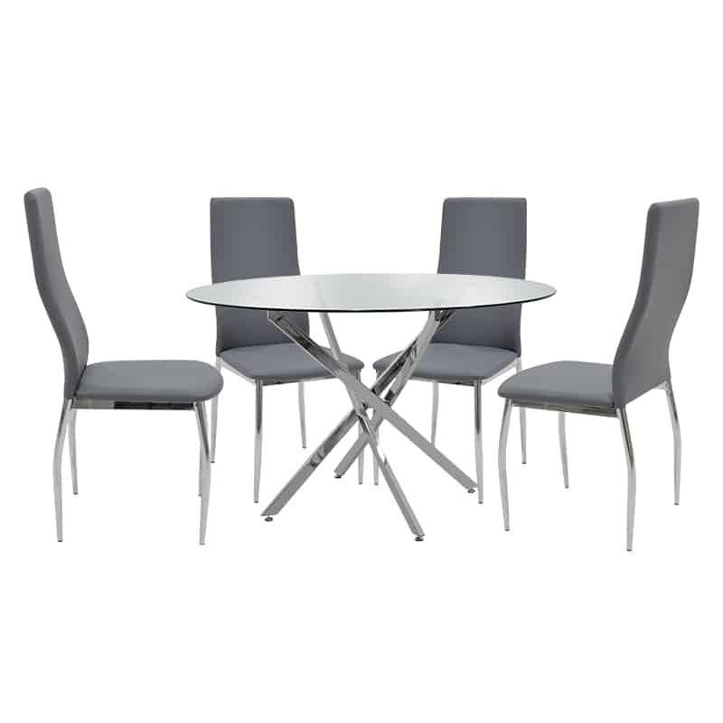 Dhoma e ngrënies Steve-Jella është zgjedhja më e përshtatshme për ju që jeni në kërkim të mobiljeve me estetikë dhe cilësi të lartë. Kombinoni klasiken me stilin modern të dekorimit dhe jepini një frymëmarrje të re hapësirës suaj. Seti përbëhet nga një tavolinë dhe katër karrige.