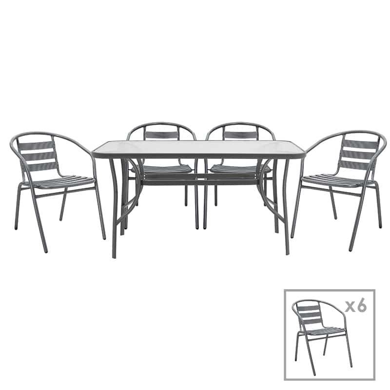 Bëhu i pari që shkruani një vlerësim për 'Set ngrënieje 7pcs Ensure-Tade metal-glass gri të errët 140x80x70cm'