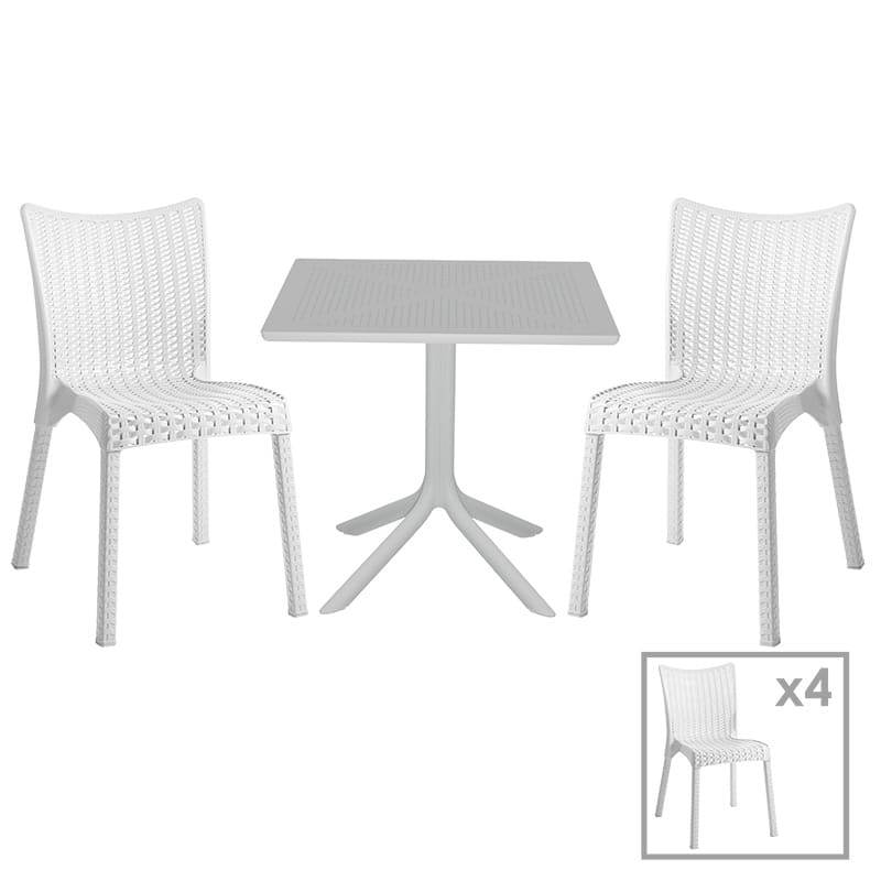 Tavolina e ngrënies së kopshtit Groovy-Confident set prej 5 PP bardhë 80x80x74.5cm.