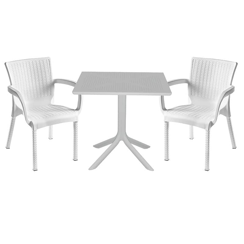 Tavolina e ngrënies së kopshtit Groovy-Festive set i 3 PP bardhë 80x80x74.5cm