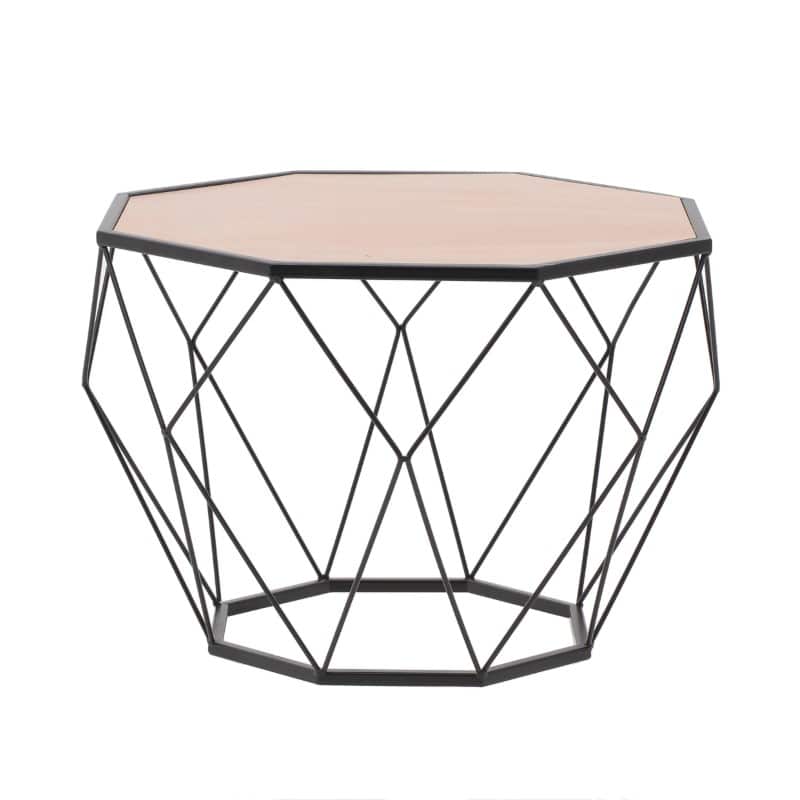 Tavolina e kafesë Yanth Inart metali natyror dru-zi 60x60x40cm