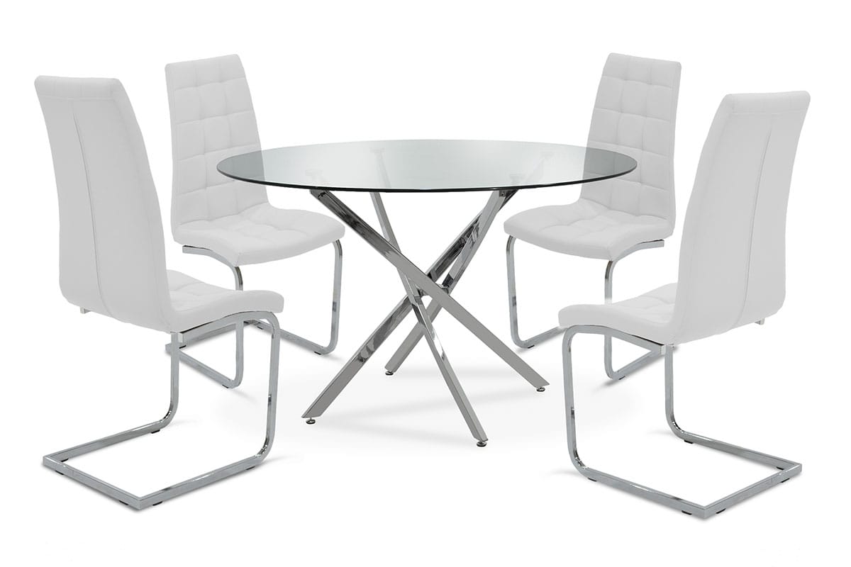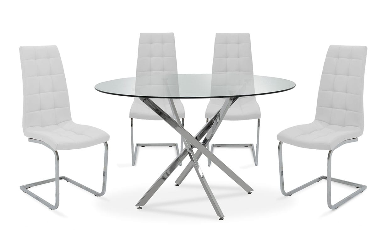 Tavolina e ngrënies vendos 5pcs Steve me karrige xhami mocha pu D120x74,5cm