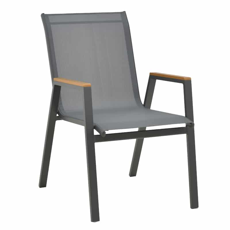 Tavolina e ngrënies Nares-Azelie, set prej 7 copë, alumin në nuancë antracit dhe shper pllakë (kompensatë) në nuancë natyrale 180x90x72.5cm