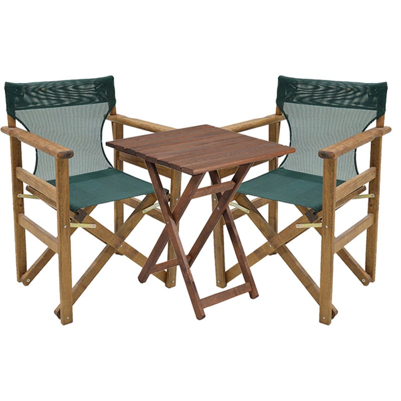 Tryezë ngrënieje kopsht Retto set prej 3 copë druri të ngurta të arrave-PVC cypress gjelbër 70x70x71cm