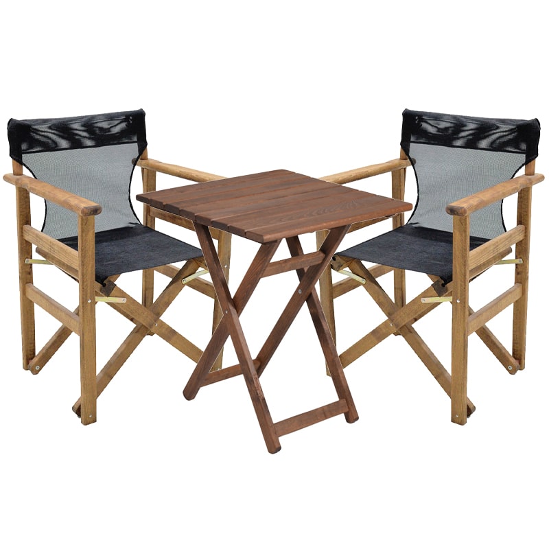 Tavolina e ngrënies së kopshtit Seti i 3 pjesëve druri i fortë i bletës arra-pëlhurë-gri e zezë 70x70x71cm