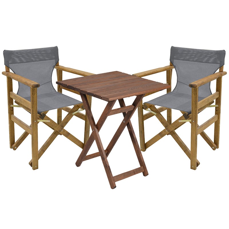 Tryezë ngrënieje kopshti Seti i 3 pjesëve druri i ngurta i bletës arra-PVC gri-bardhë 70x70x71cm