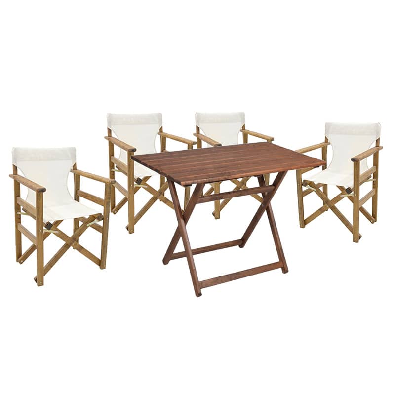 Tavolina e ngrënies kopsht Retto grup prej 5 copë druri të ngurta arrë arrë-PVC bardhë 100x60x71cm