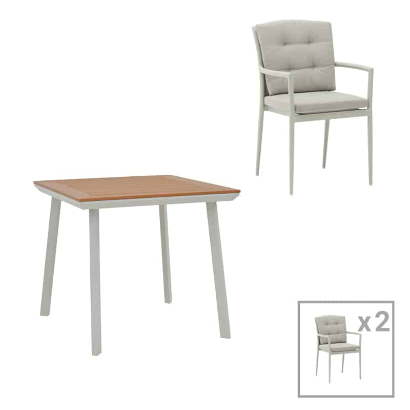 Tavolina e ngrënies Synergy-Moritz komplet 3 alumini gri të bardhë dhe kompensatë me ngjyrë natyrale 80x80x74cm