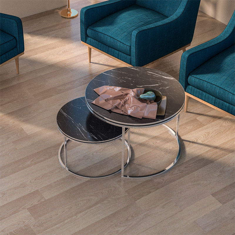 Tavolinat e kafesë Tetor Pakoworld set prej 2 copë mermer-argjend të zi