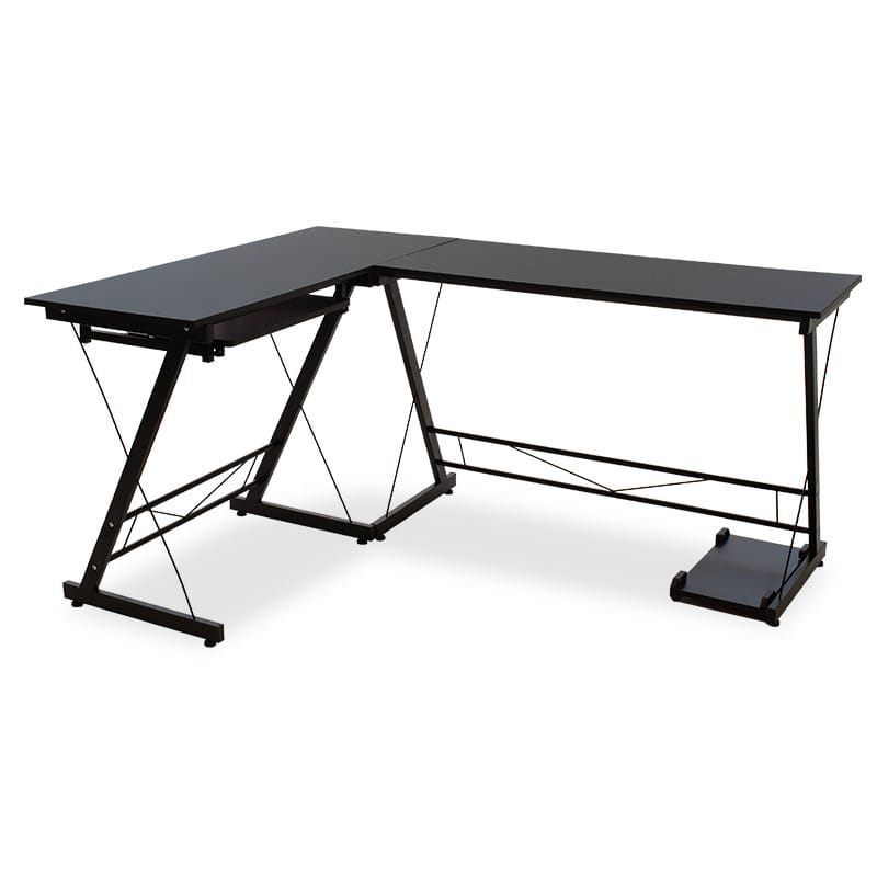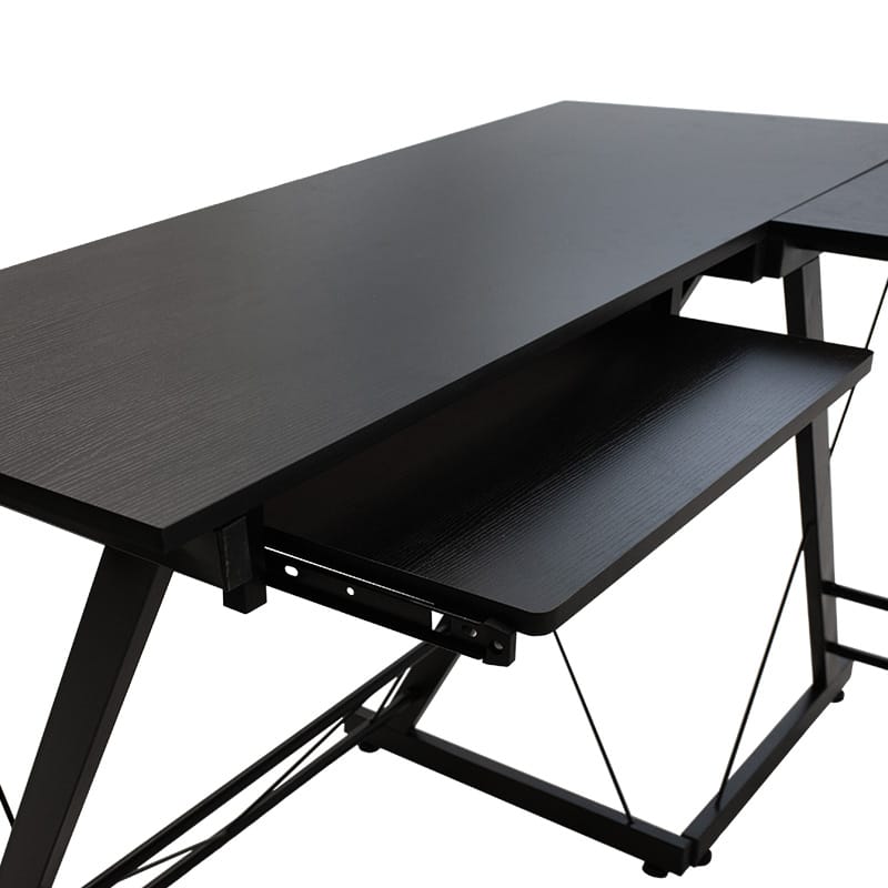 Tavolinë kompjuteri Levi, shumë-funksionale, MDF dhe metal në ngjyrë të zezë, 158x120x73cm