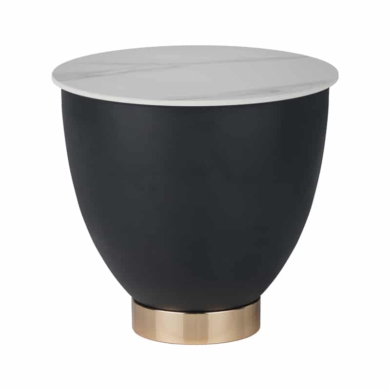 Tavolinë anësore Erasmine Inart, gur i sinteruar me mermer të bardhë D50x45cm