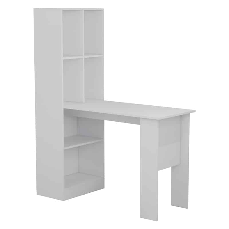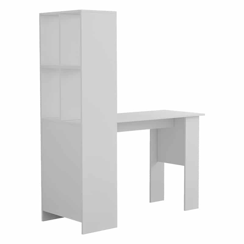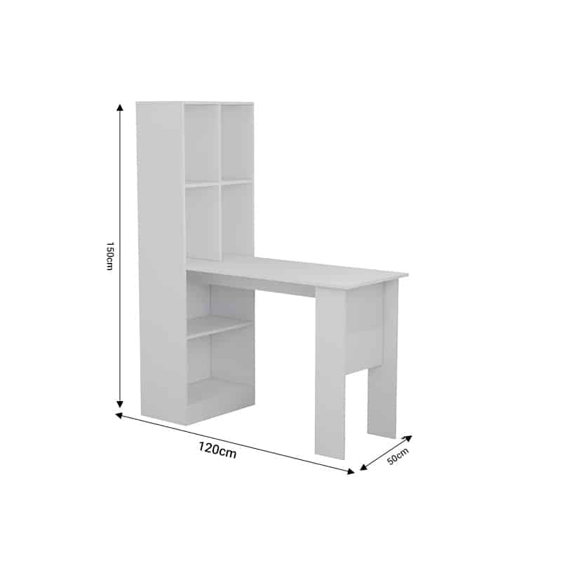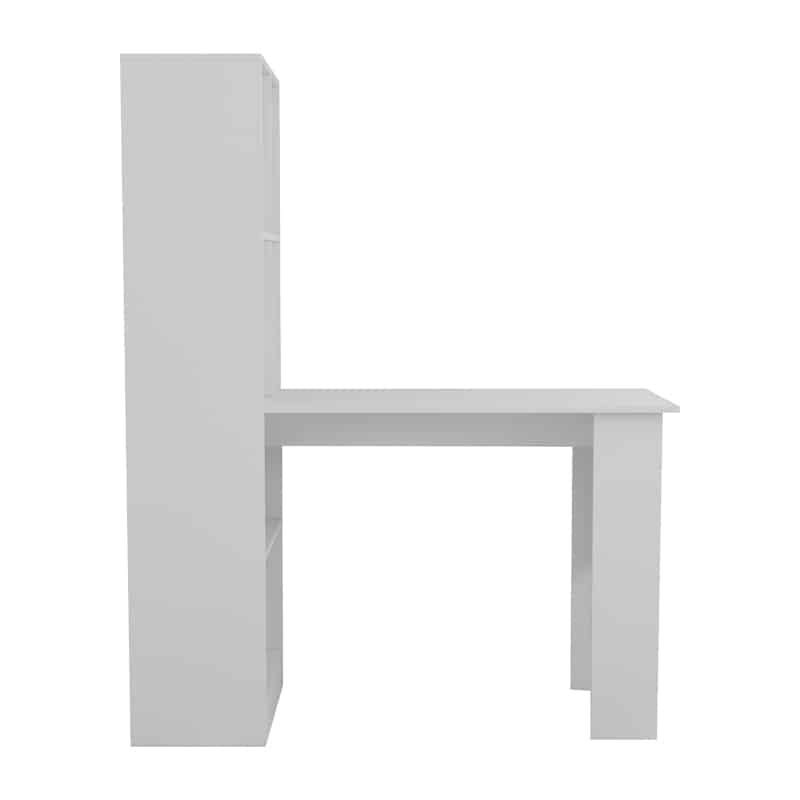 Tavolinë për zyre me raft Acumen, e veshur me melamine të bardhë, 120x50x150cm