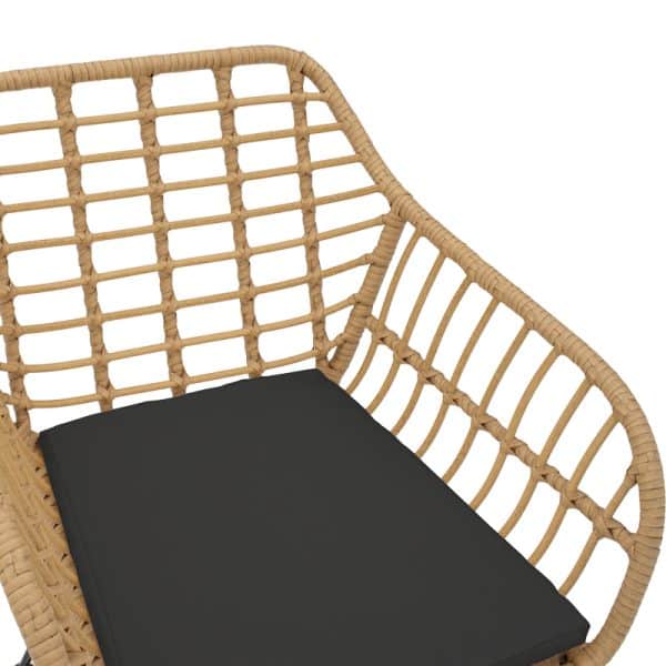 • Sipërfaqja e karriges kryesisht PE bastun prej palme kacavjerrëse me ngjyrë natyrale. PE rattan është një lloj rattani sintetik ekologjik, i riciklueshëm dhe më i qëndrueshëm se llojet e tjera.