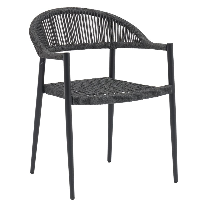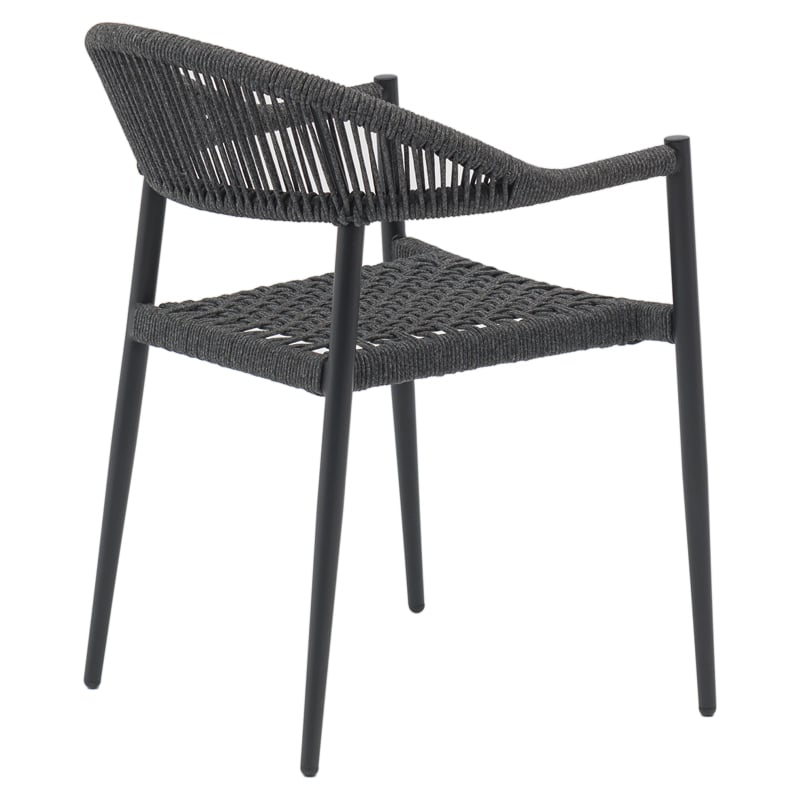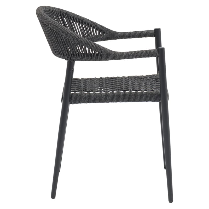 Tavolinë ngrënie Thorio- Freiburg komplet prej 7 antracit alumini dhe kompensatë në nuancë natyrale 160x90x75cm