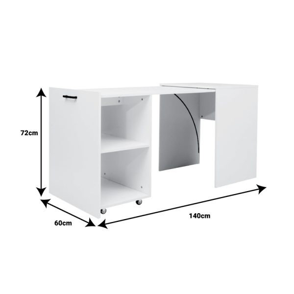 Tavolinë pune polimorfike Tivizual, melaminë e palosshme në nuancë të bardhë 140x60x72cm