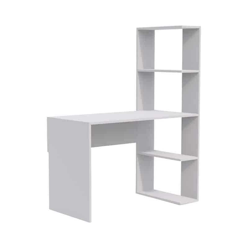 Prezantimi i një kompozimi bashkëkohor me imagjinatë me dizajn gjeometrik që kombinon një tavolinë dhe raft librash së bashku. Dizajni i tij bashkon estetikën dhe funksionalitetin, duke siguruar një hapësirë pune të rehatshme dhe ruajtje librash. Zgjidhja më e mirë dekorative për një hapësirë të vogël.