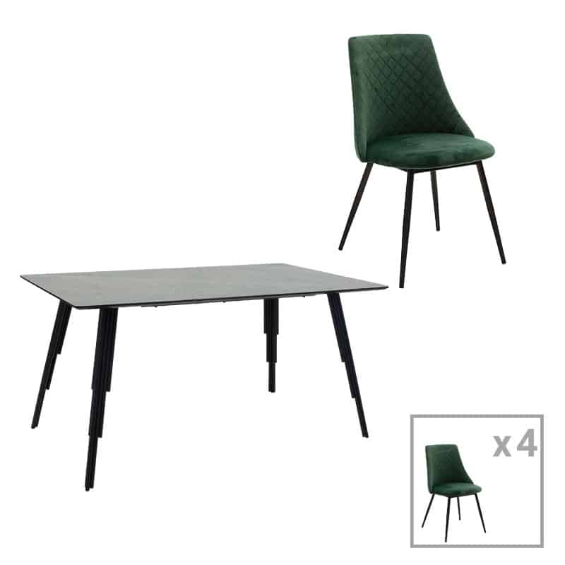 Tryezë ngrënie Lifo-Giselle set prej 5 copë MDF çimento-gjelbër të errët 140x80x75cm